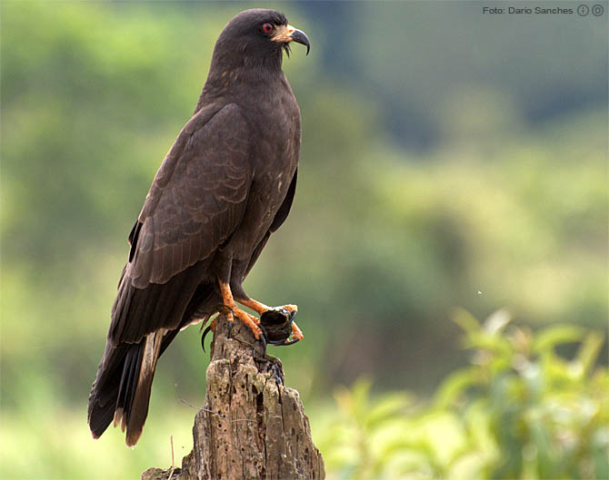 O caramujeiro tem aproximadamente 40 cm e seu habitat são brejos, lagoas e pastos alagados, que vão desde o sul dos EUA, passando pelo México, o Brasil e chegando até a Argentina. Em El Salvador, a população do Gavião-caramujeiro está crescendo, apesar dele só ter sido avistado pela primeira vez no país em 1996. A razão é a introdução local do caramujo Pomacea flagellata, entre 1982 e 1986, como alimento para peixes. O efeito colateral da proliferação dos novos caramujos foi vitaminar a população do caramujeiro. Foto: Dario Sanches Conheça outros Animais da Semana ((o))eco